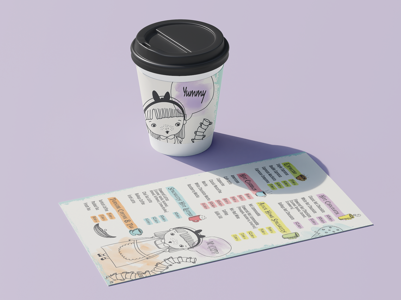 Alice Café – Menu & Packaging Design